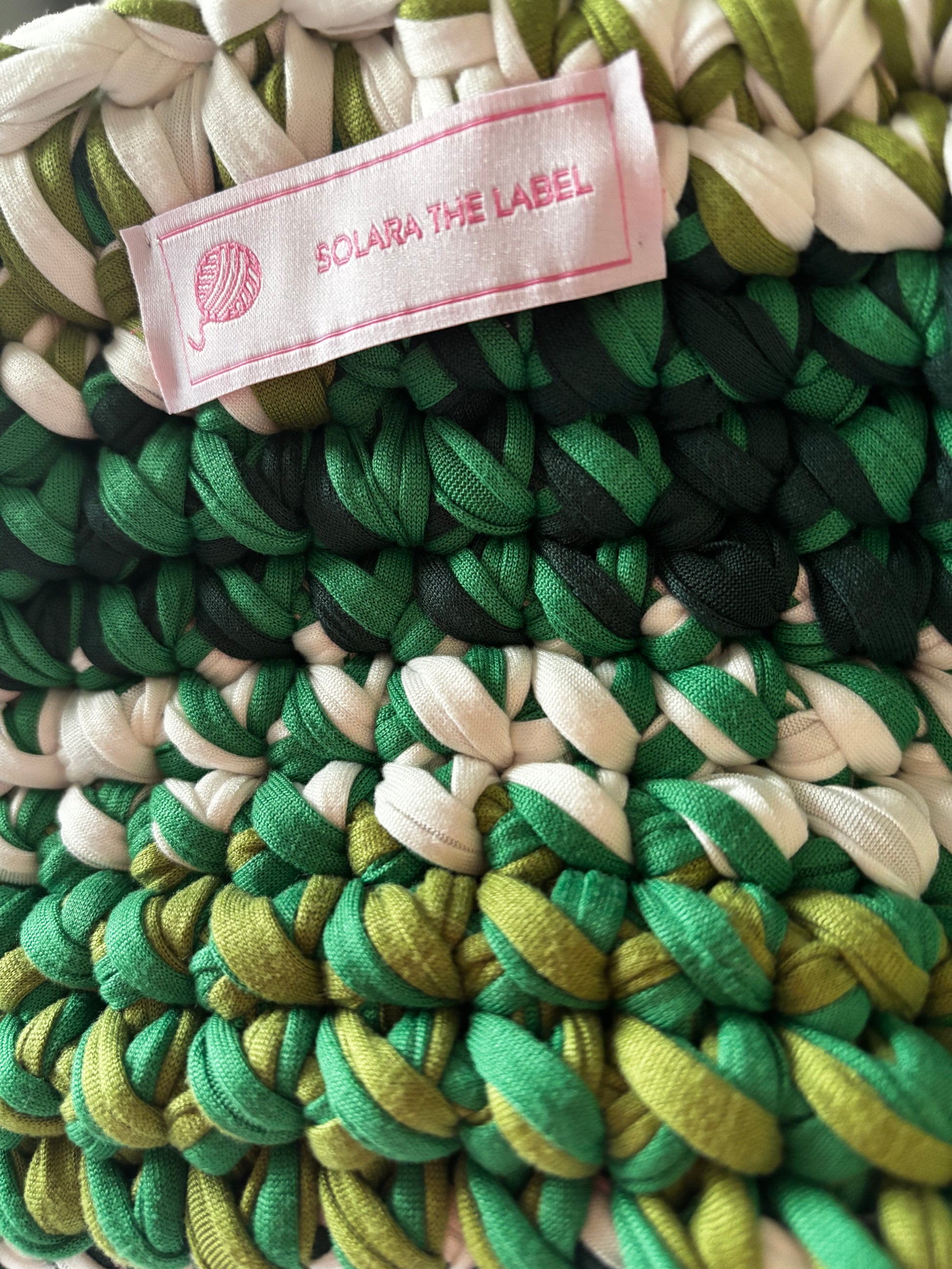 Handmade with recycled T-shirt yarn ♻️ and full of texture, she’s lightweight, compact and ready to go wherever you do — from café catch-ups to golden hour cocktails 🍸🌱